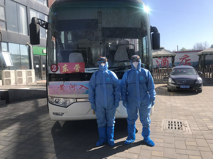 3月17日晚,汽車二隊接到公司指令,迅速動員調(diào)集10名駕駛員,5臺大巴車組成轉(zhuǎn)運隊伍,配合市防疫指揮部駐北京工作專班執(zhí)行入境人員回東營市區(qū)的轉(zhuǎn)運任務(wù)。接到指令后,汽車二隊迅速定人定車,在短短30分鐘內(nèi)完成人員和車輛的調(diào)集。在市防疫指揮部與公安、衛(wèi)生等部門工作人員共同參加完簡短又嚴(yán)肅的部署動員會后,全體參運駕駛員不顧安危,道別家人,次日便身穿防護(hù)服,全副武裝,奔赴防疫前線,成為了“抗疫逆行者”。