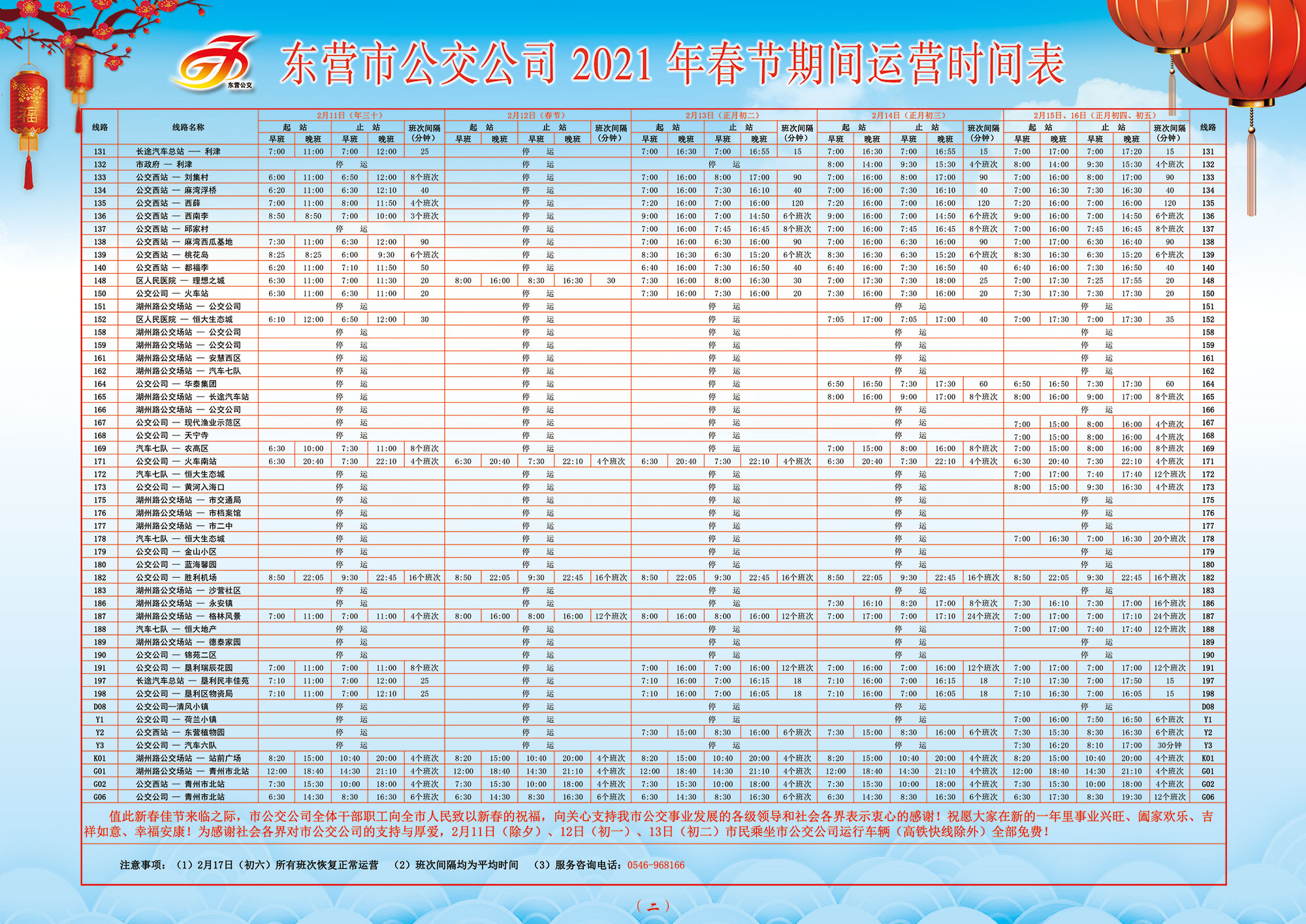 值此新春佳節(jié)來臨之際,市公交公司全體干部職工向全市人民致以新春的祝福,向關(guān)心支持我市公交事業(yè)發(fā)展的各級(jí)領(lǐng)導(dǎo)和社會(huì)各界表示衷心的感謝!祝愿大家在新的一年里事業(yè)興旺、闔家歡樂、吉祥如意、幸福安康!為感謝社會(huì)各界對(duì)市公交公司的支持與厚愛,2月11日(除夕)、12日(初一)、13日(初二)市民乘坐市公交公司運(yùn)行車輛(高鐵快線除外)全部免費(fèi)!